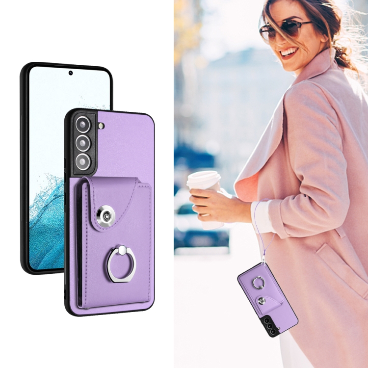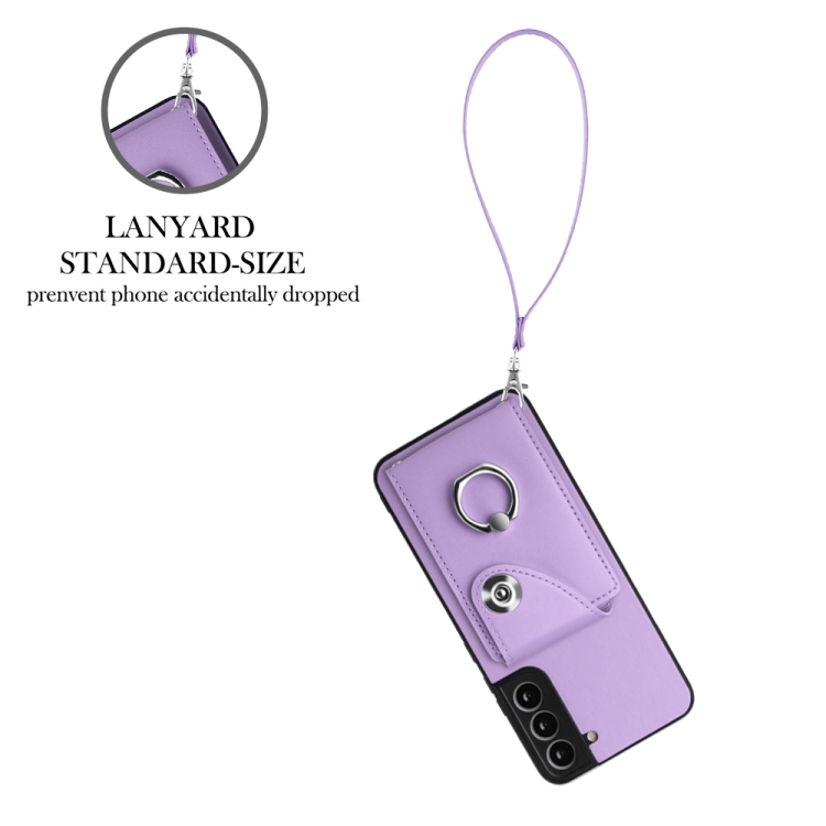 Funda para Teléfono Samsung Galaxy S21 FE 5G Bolsa para Tarjeta Soporte para Anillo Cordón (Púrpura)