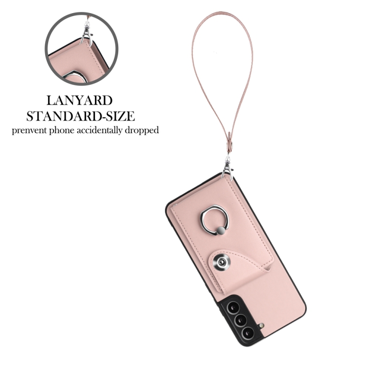 Funda para Teléfono Samsung Galaxy S21 FE 5G Bolsa para Tarjeta Soporte para Anillo con Cordón (Rosa)