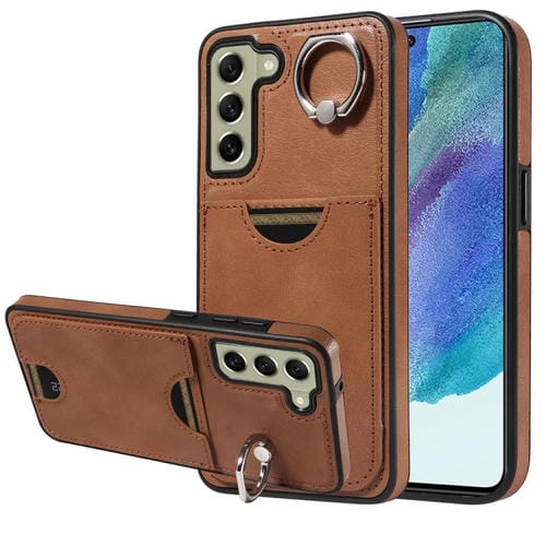 Funda para Teléfono Samsung Galaxy S21 FE 5G con Soporte para Anillo y Ranura para Tarjeta (Marrón)