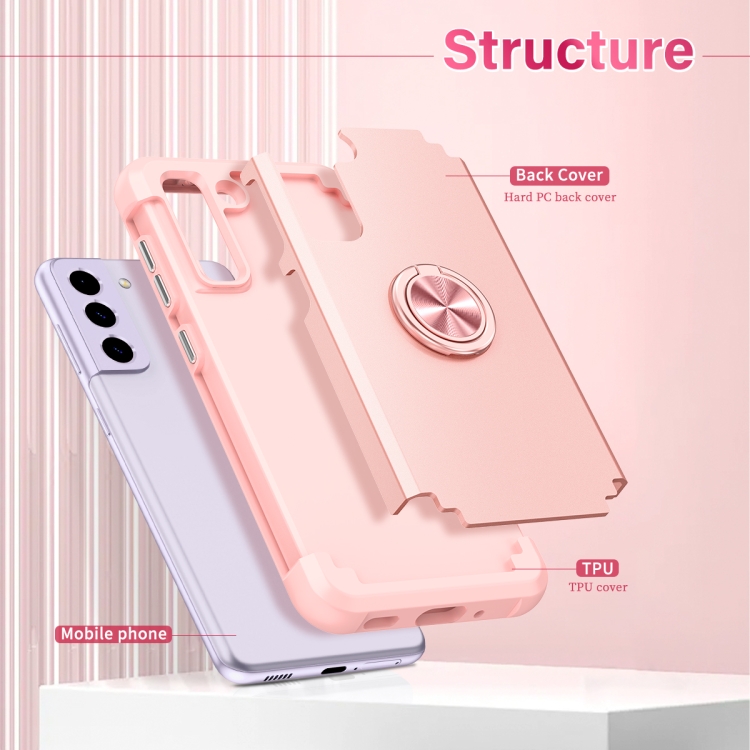 Funda para Samsung Galaxy S21 FE 5G L2 Magnética con Soporte de Anillo Giratorio (Oro Rosa)
