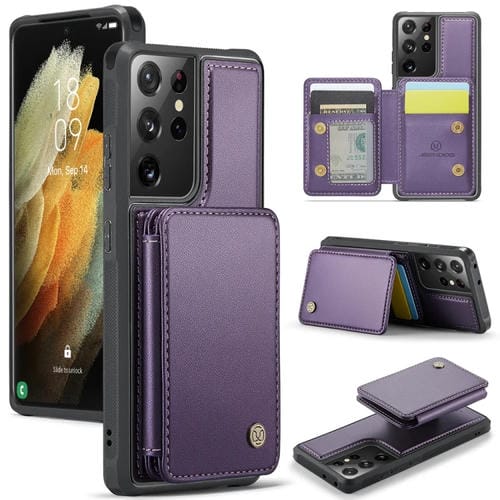 Estuche para Teléfono Samsung Galaxy S21 Ultra 5G Jeehood J05 Cuero Rfid Magnético Empresarial (Púrpura)