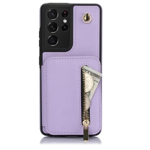 Estuche para Samsung Galaxy S21 Ultra 5G Ym006 con Bolsa para Tarjetas Cremallera y Cordón Doble (Púrpura Claro)