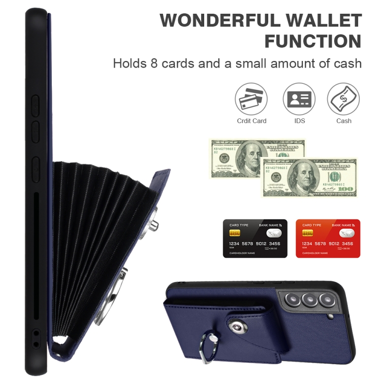 Funda para Teléfono Samsung Galaxy S22 + 5G Bolsa para Tarjeta Soporte Anillo y Cordón (Azul)