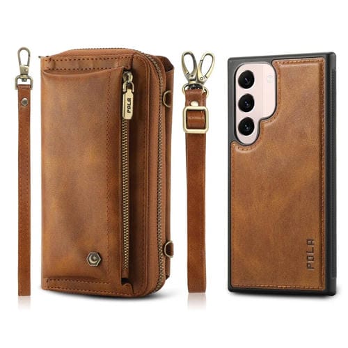 Funda para Samsung Galaxy S22+ 5G Crossbody Estuche de Cuero con Billetera y Cremallera (Marrón)