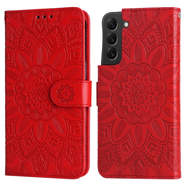 Estuche para Teléfono Samsung Galaxy S22+ 5G Cuero Estampado Girasol (Rojo)