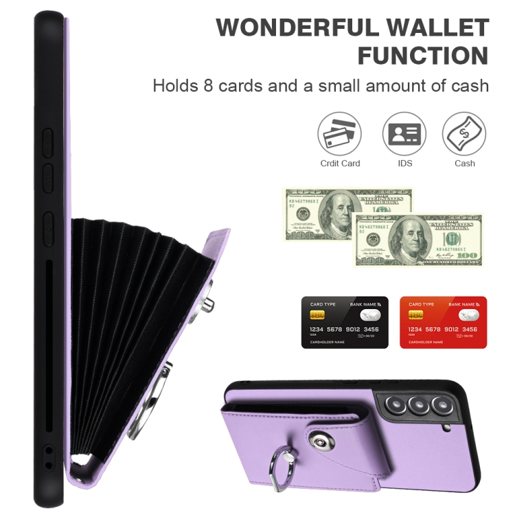 Funda para Teléfono Samsung Galaxy S22 + 5G Pu con Soporte para Anillo y Bolsa para Tarjeta con Cordón (Púrpura)