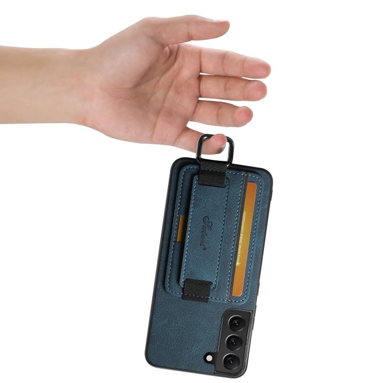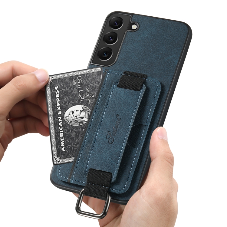 Funda para teléfono Suteni H13 para Samsung Galaxy S22+ 5G con correa de cuero litchi (Azul)