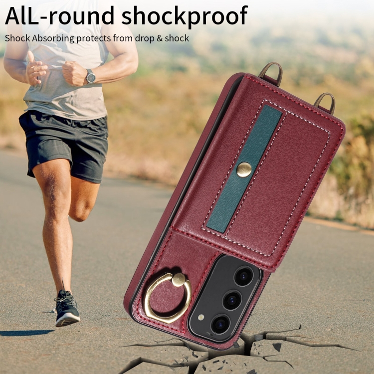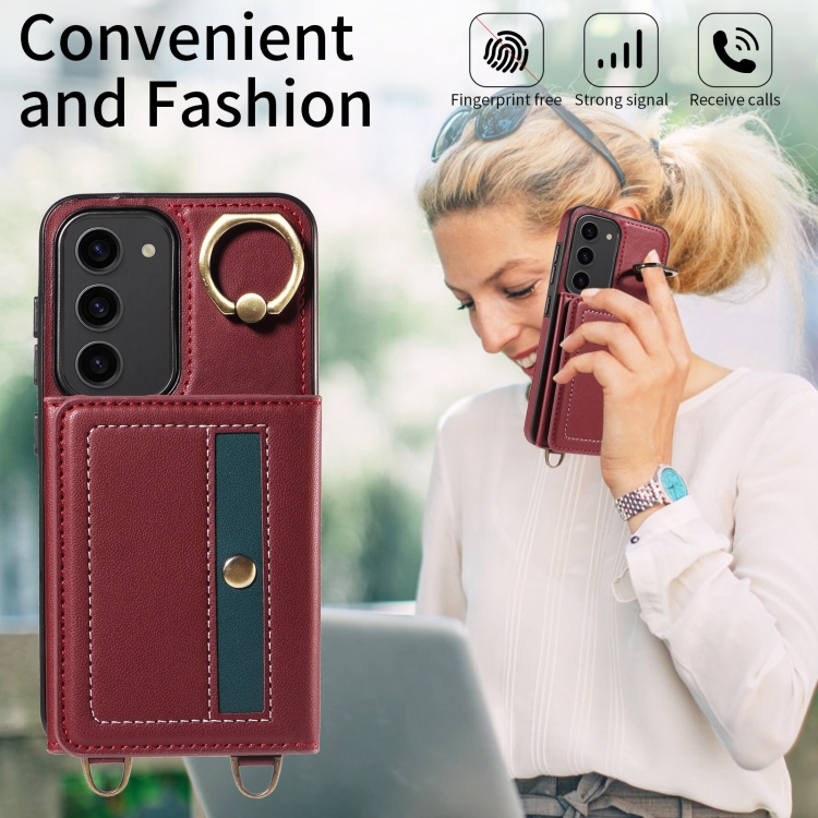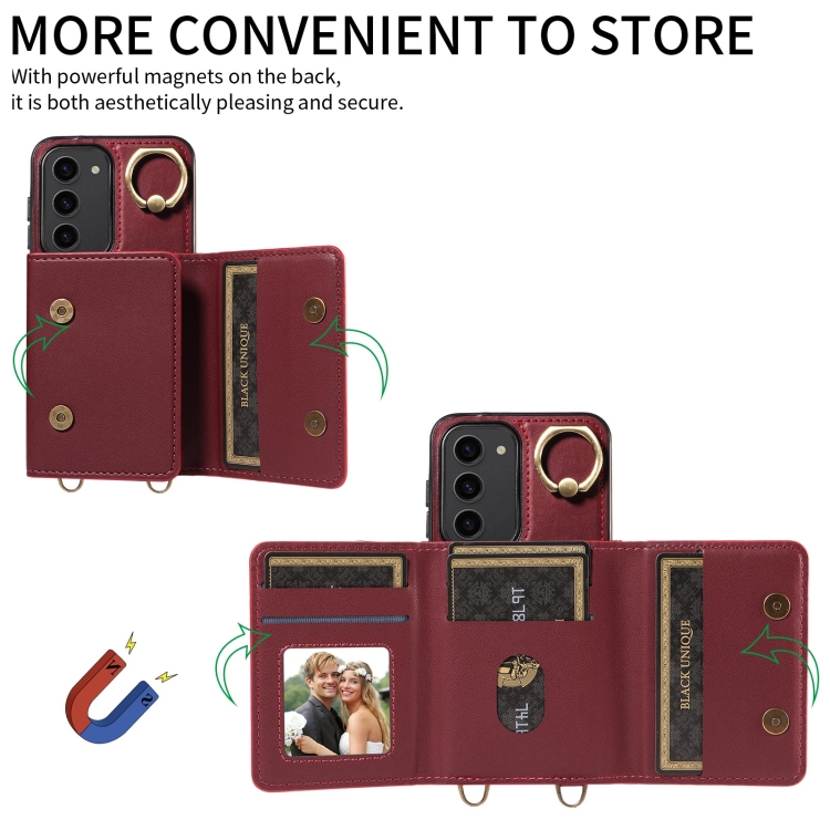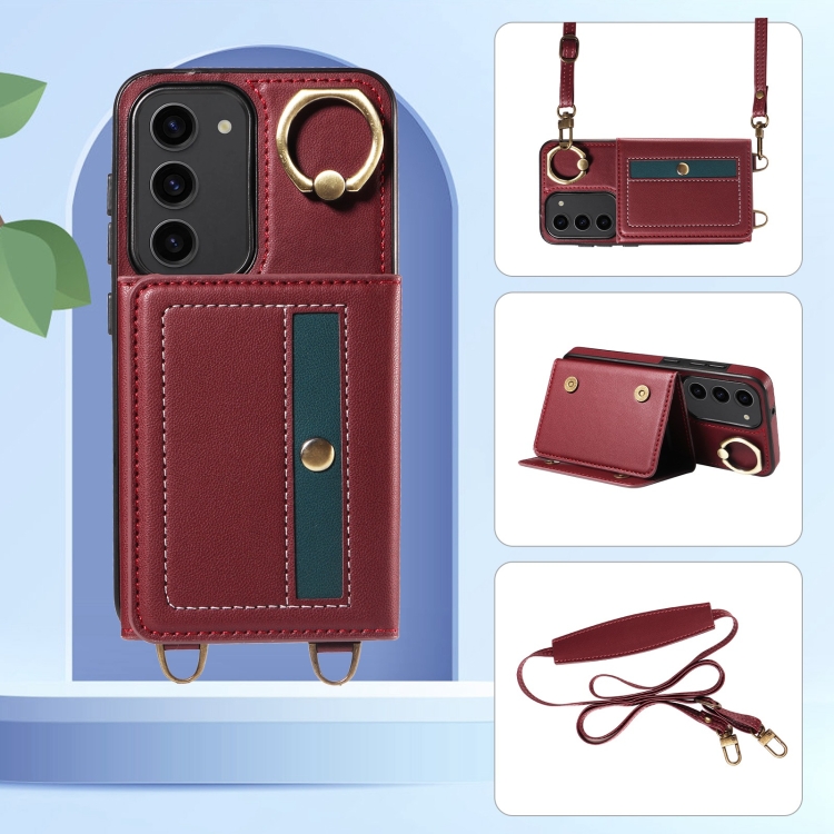 Funda para Samsung Galaxy S23 5G Crossbodys Wallet Bag Ring Holder de Cuero (Rojo)