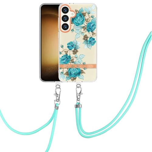 Estuche para teléfono Samsung Galaxy S24 5G Imd TPU con Cordón Serie Flores y Plantas (Rosa Azul)