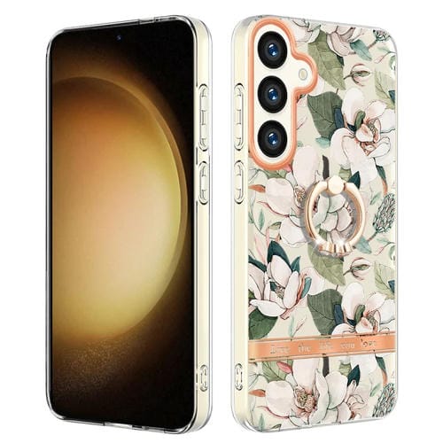 Estuche para Teléfono Samsung Galaxy S24 5G Serie Flores y Plantas Imd TPU con Soporte para Anillo (Gardenia Verde)