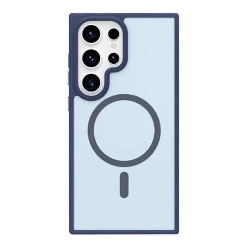 Estuche para teléfono Samsung Galaxy S24 Ultra 5G MagSafe mate a prueba de golpes con botón de metal y sensación de piel (Gris Lavanda)
