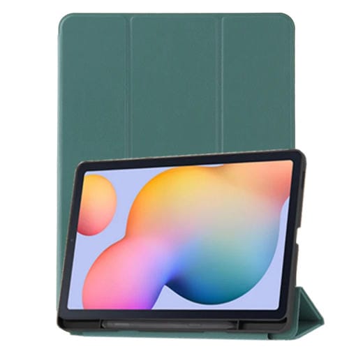 Funda para Samsung Galaxy S6 Lite P610 Cuero de PU Ventilación Nido de Abeja Tapa Horizontal 3 Soportes Ranura Bolígrafo Smart Sleep (Dark Night Green)