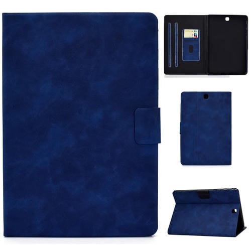 Pour Samsung Galaxy Tab A 9.7 T550 / T555C Étui en cuir à rabat horizontal à texture de peau de vache avec support et fentes pour cartes et fonction veille/réveil (bleu)
