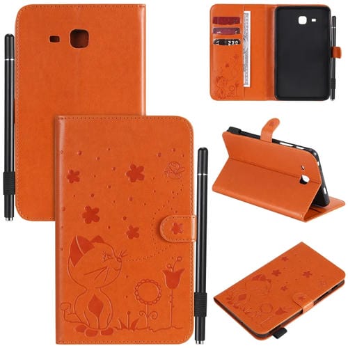 Funda protectora de cuero Samsung Galaxy Tab A7.0 T280 (2016) con patrón abeja gato, tapa horizontal, soporte, ranuras para tarjetas y función despertador (Naranja)