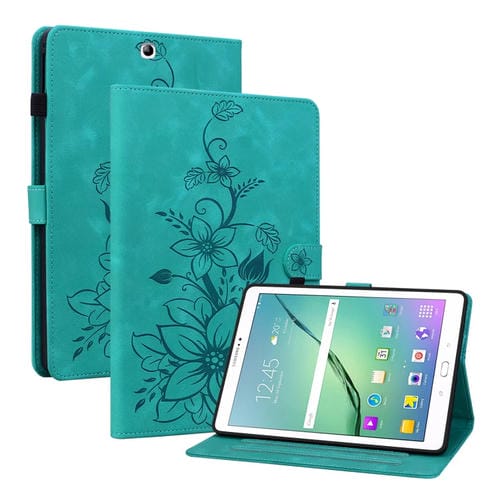 Funda para Tablet Samsung Galaxy Tab S2 9.7 T810 T815 Cuero con Relieve Lily (Verde)