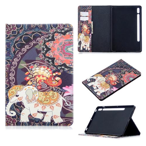 Funda para Tablet Samsung Galaxy Tab S8 y Tab S7 T870 Flip Horizontal con Soporte y Ranuras para Tarjetas (Elefante de Flores)
