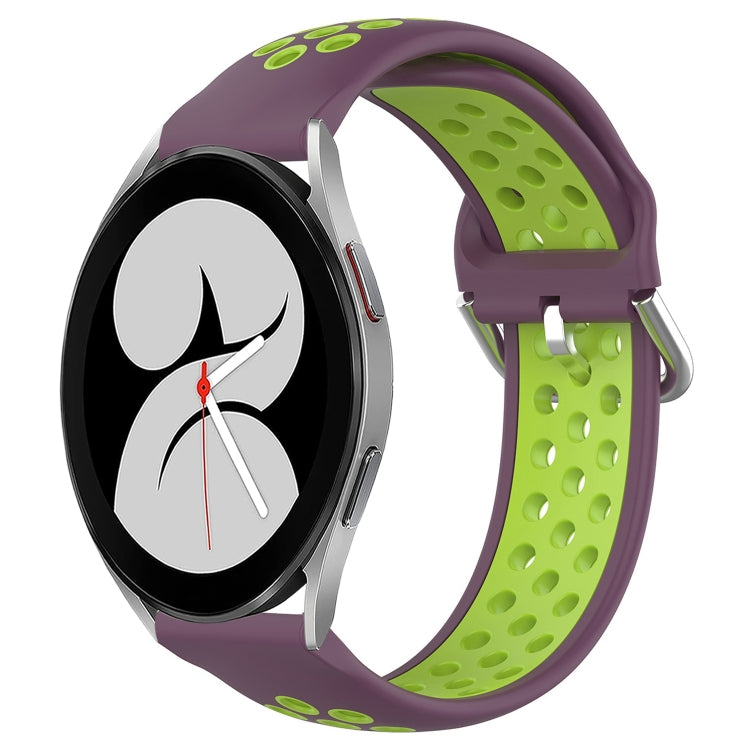 Banda de Reloj para Samsung Galaxy Watch 4 40mm 20mm silicona deportiva transpirable perforada (Púrpura + Lima)