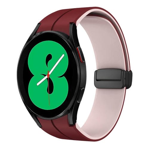 Correa de Silicona para Samsung Galaxy Watch 4 44mm con Hebilla Plegable Magnética Dos Colores (Rojo Vino + Rosa)