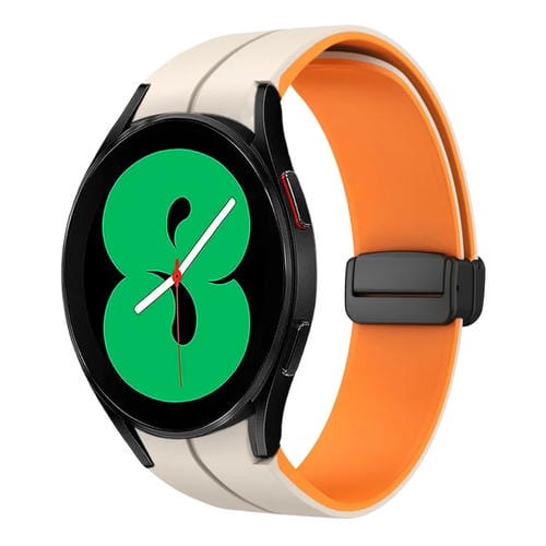 Correa de Silicona para Samsung Galaxy Watch 4 44mm con Hebilla Plegable Magnética Dos Colores (Starlight + Naranja)