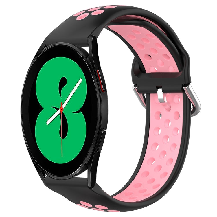 Banda de Reloj silicona para Samsung Galaxy Watch 4 44mm 20mm deportiva perforada (Negro + Rosa)