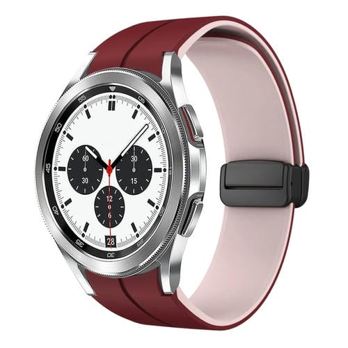 Correa de Silicona para Samsung Galaxy Watch 4 Classic 42mm con Hebilla Plegable Magnética (Rojo Vino + Rosa)