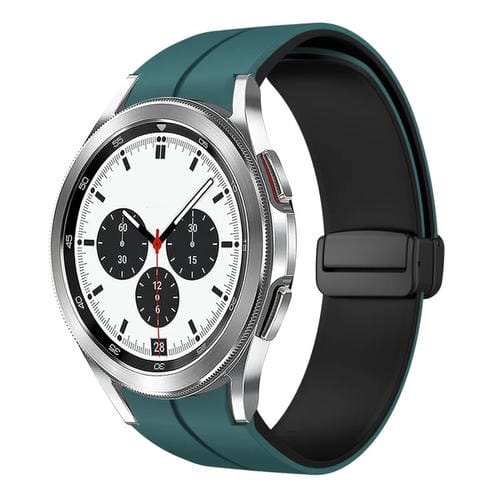 Correa de Silicona para Samsung Galaxy Watch 4 Classic 42mm con Hebilla Plegable Magnética (Verde + Negro)