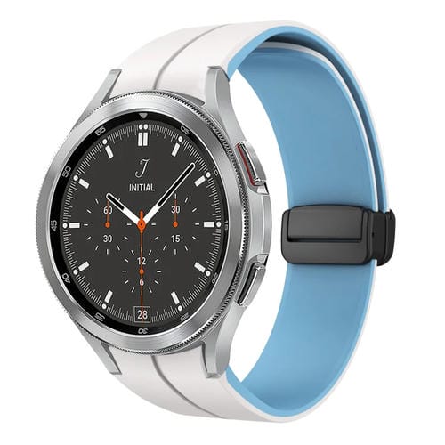 Correa de Silicona para Samsung Galaxy Watch 4 Classic 46mm con Hebilla Plegable Magnética Dos Colores (Blanco + Azul)