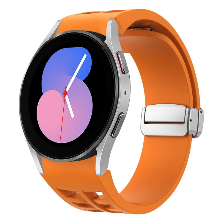 Correa de Reloj Silicona para Samsung Galaxy Watch 5 40/44mm Richard con Hebilla Plateada Plegable Magnética (Naranja)