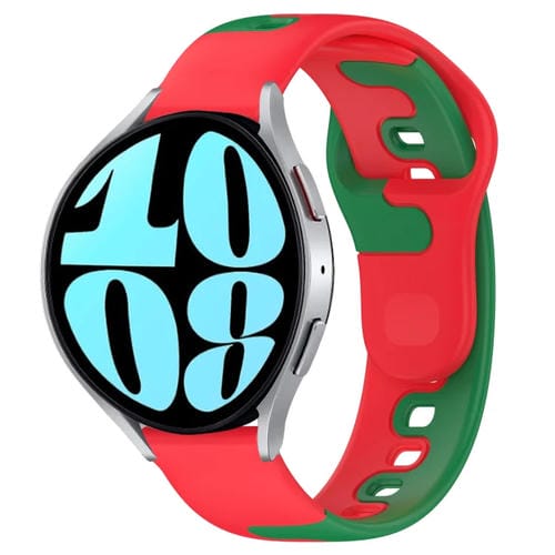 Correa de Reloj para Samsung Galaxy Watch 6 44mm 20mm Silicona Doble Color (Rojo + Verde)