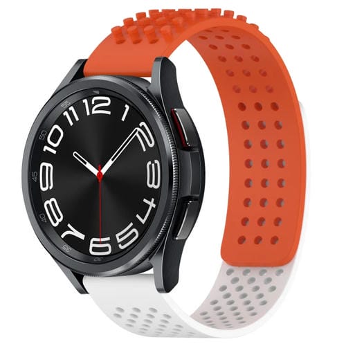 Correa de Silicona para Samsung Galaxy Watch 6 Classic 43mm 20mm con Orificios y Puntos 3D (Naranja + Blanco)