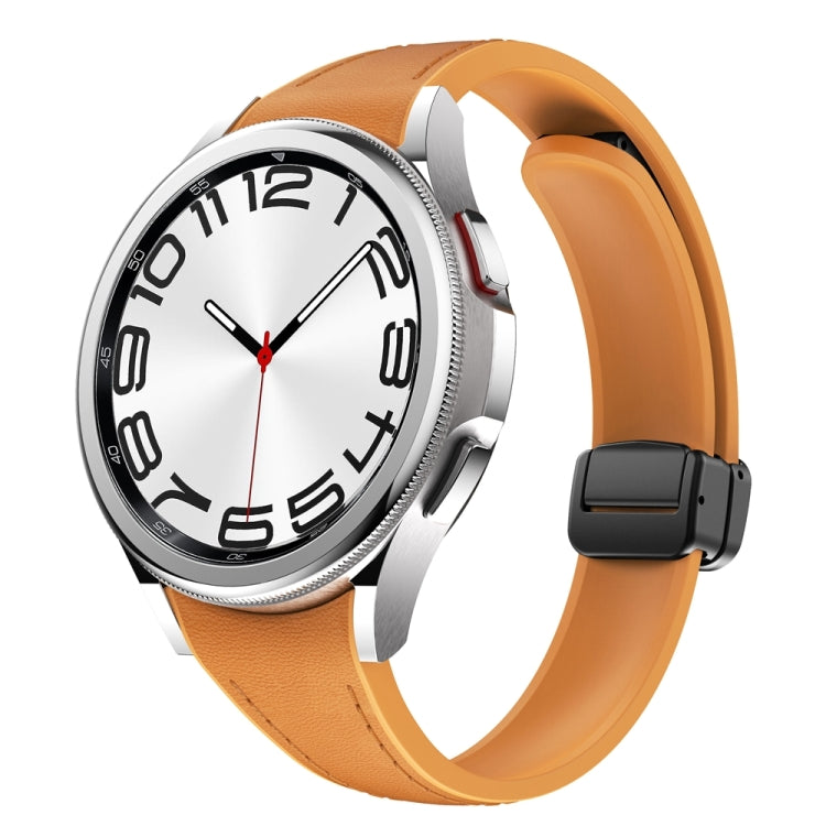 Correa de Silicona y Cuero para Samsung Galaxy Watch 6 con Hebilla Magnética Negra Delgada (Marrón Claro)