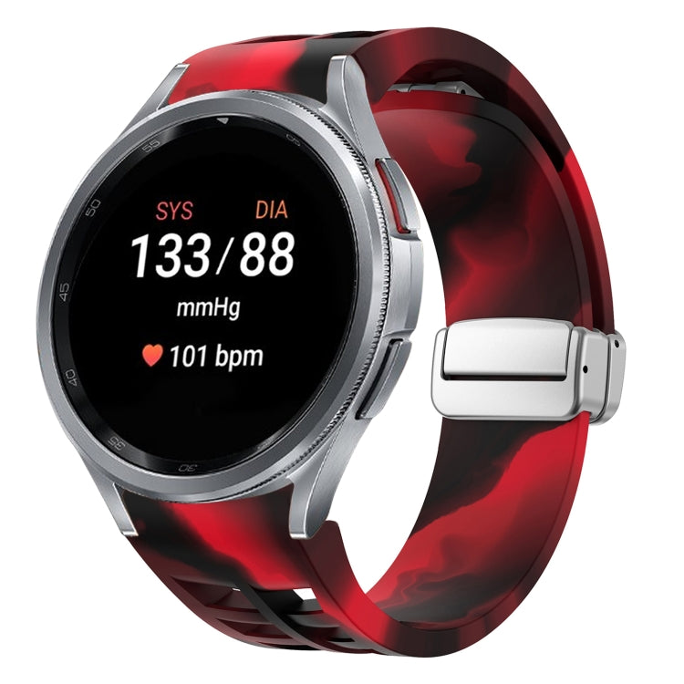 Pour Samsung Galaxy Watch 7 40/44 mm Bracelet de montre en silicone Richard avec boucle argentée pliante magnétique (Camouflage rouge noir)