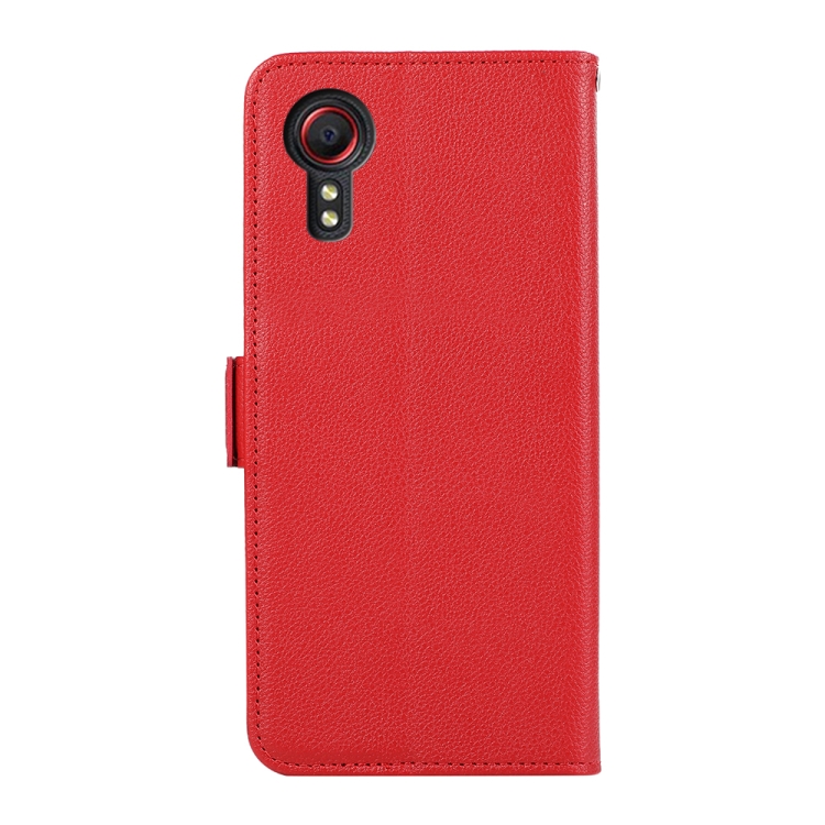 Funda para Teléfono Samsung Galaxy Xcover 5 Abeel Cuero Patrón Litchi Magnético Lateral (Rojo)