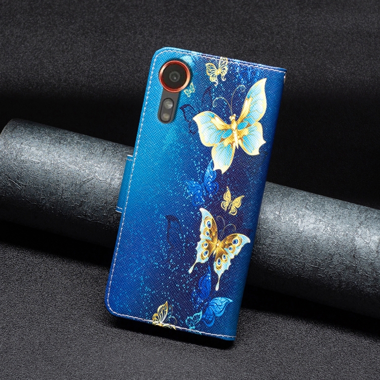 Funda para Samsung Galaxy Xcover 7 Cuero con Patrón de Dibujo (Mariposa Dorada)