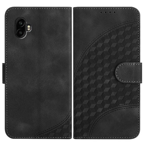 Funda de Cuero Samsung Galaxy Xcover6 Pro Yx0060 con Relieve de Cabeza de Elefante y Cordón (Negro)