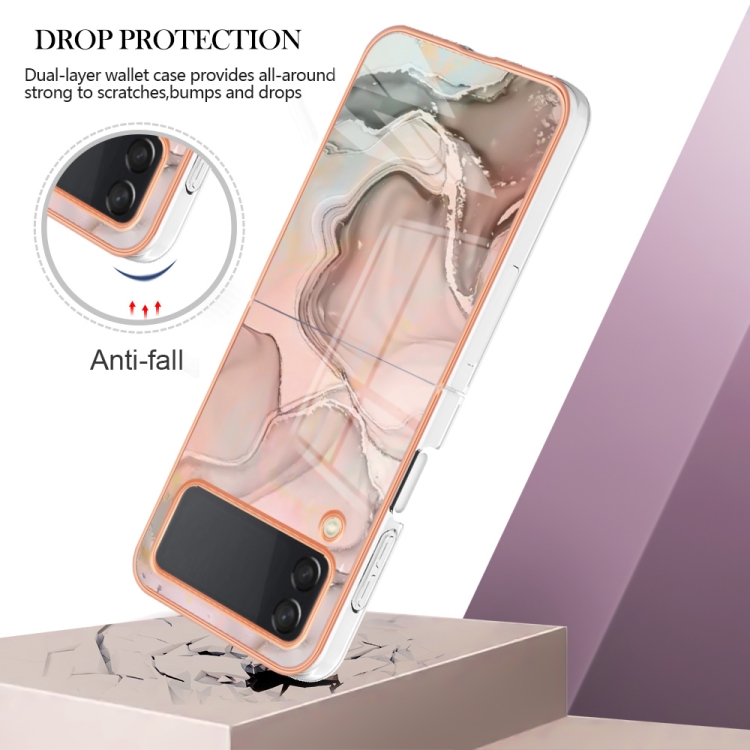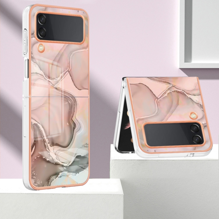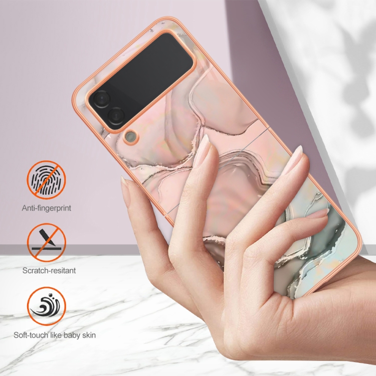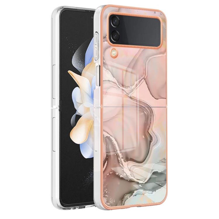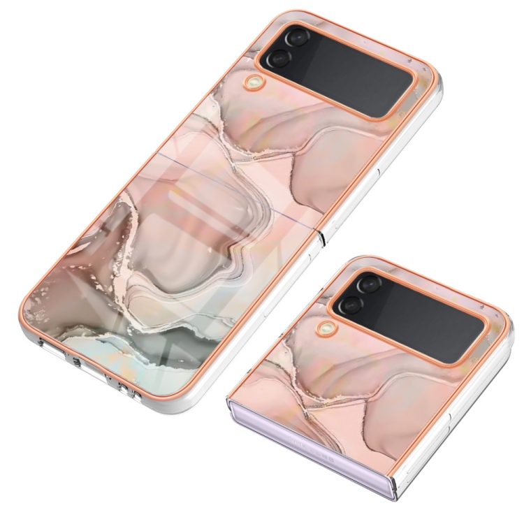 Estuche para Teléfono Samsung Galaxy Z Flip3 5G Imd Doble Cara Mármol Galvanizado (Oro Rosa)
