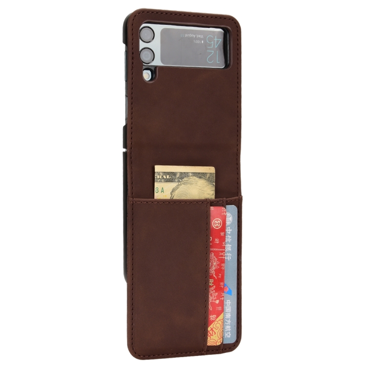 Estuche para Teléfono Samsung Galaxy Z Flip3 5G Skin-Feeling Half-Split Ranura para Tarjeta Externa (Marrón)