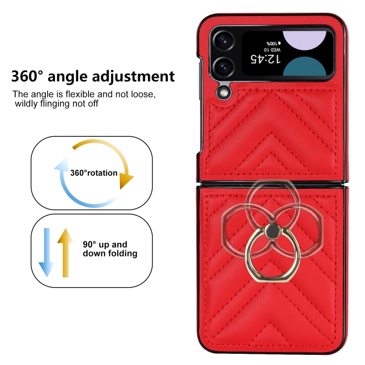 Funda Protectora Samsung Galaxy Z Flip4 para Teléfono Plegable en Forma de V con Anillo Giratorio (Rojo)