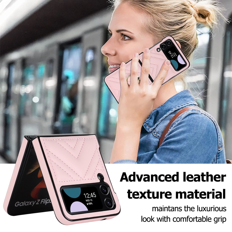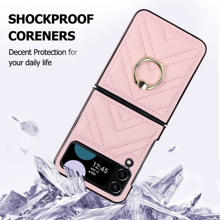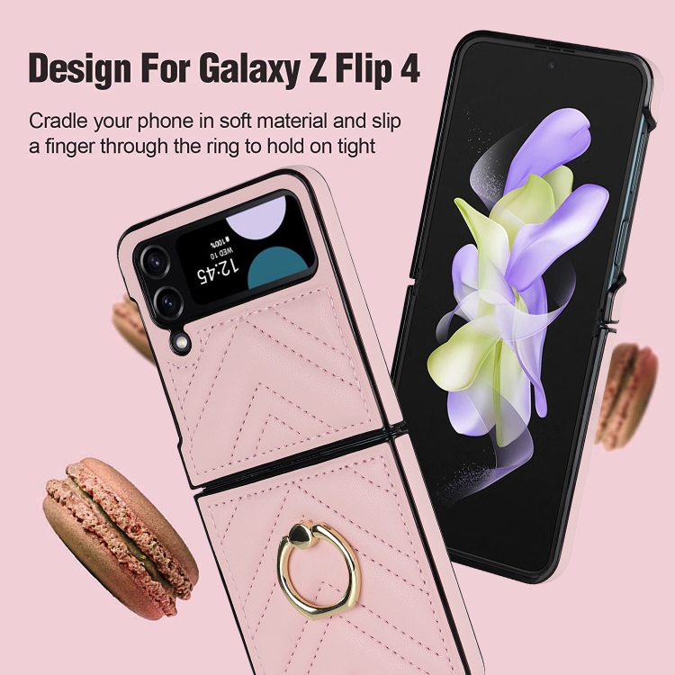 Funda Protectora Samsung Galaxy Z Flip4 Teléfono Plegable Forma de V con Anillo Giratorio (Rosa)