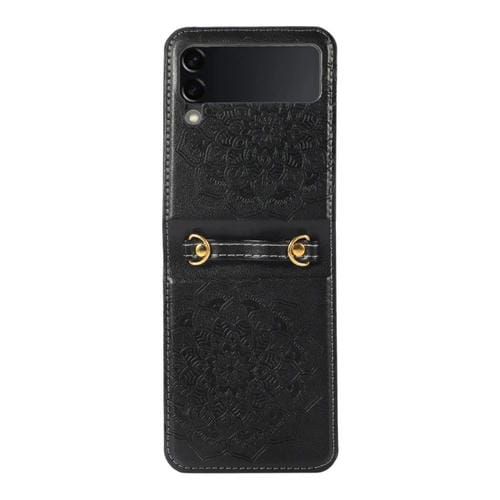 Funda de Cuero para Samsung Galaxy Z Flip4 Mandala Embossing Fold (Negro)