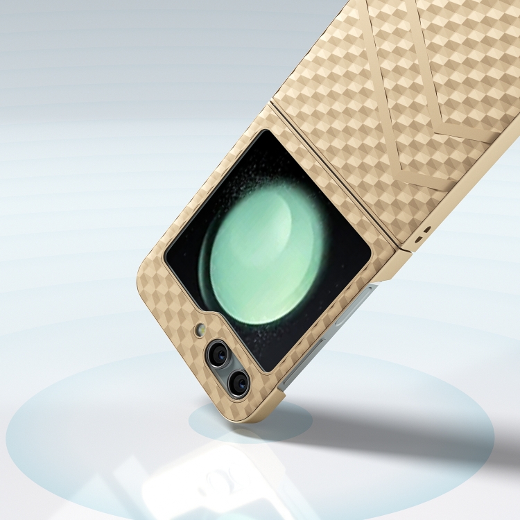 Estuche para Teléfono Samsung Galaxy Z Flip5 5G con PC Mate y Patrón de Onda (Dorado)