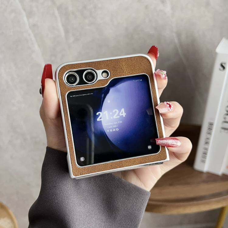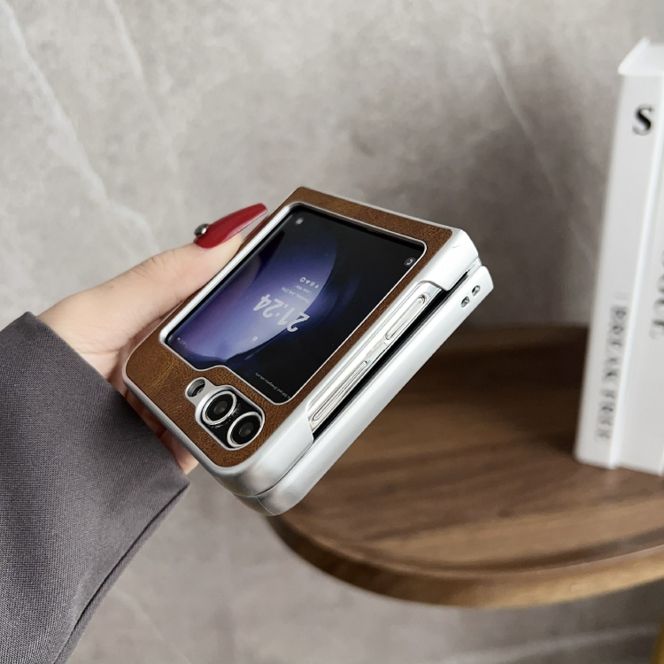 Funda para Teléfono Samsung Galaxy Z Flip5 Skin Feel Textura de Cuero Magsafe Pintura Nacarada (Rosa)