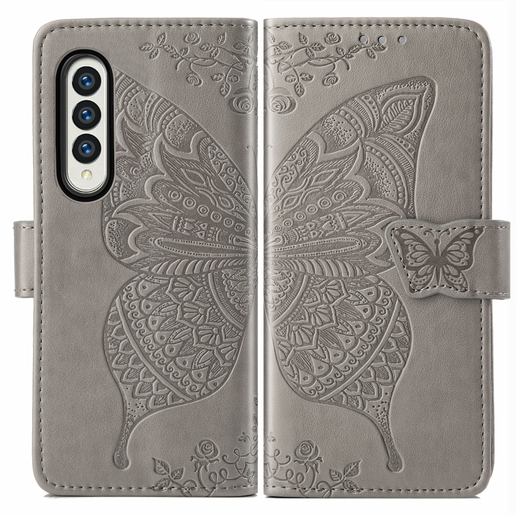 Estuche para teléfono Samsung Galaxy Z Fold4 Butterfly Love Flower Cuero Tapa Horizontal En Relieve (Gris)