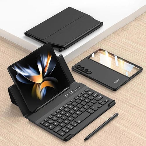 - 1x Estuche de Cuero para Samsung Galaxy Z Fold4 Gkk con Teclado Bluetooth Plegable Magnético y Bolígrafo + Estuche para Teléfono (Negro)