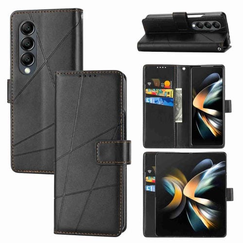 Funda para Teléfono Samsung Galaxy Z Fold4 Pu con Línea En Relieve y Textura de Cuero Genuino (Negro)