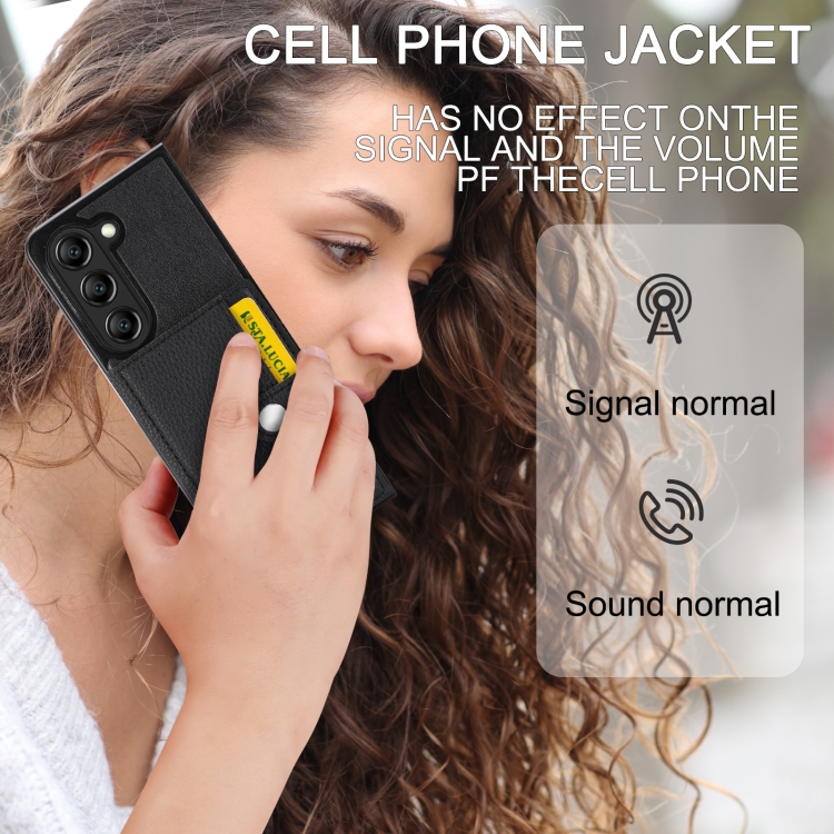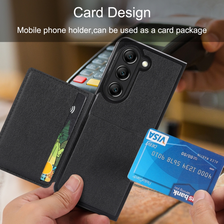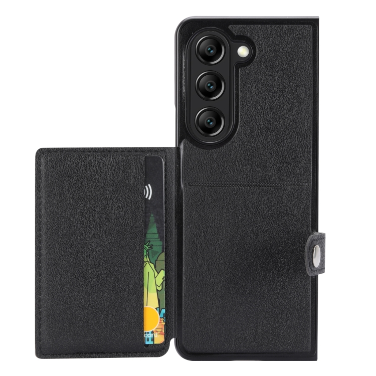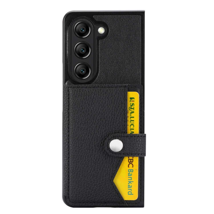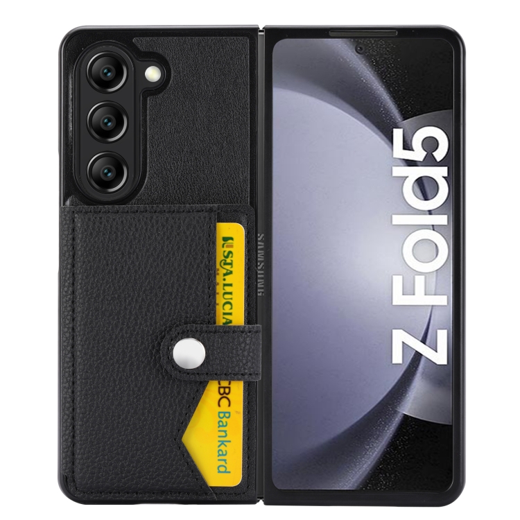 Funda para Teléfono Samsung Galaxy Z Fold5 Litchi Pattern con Tarjetero de Un Solo Botón (Negro)