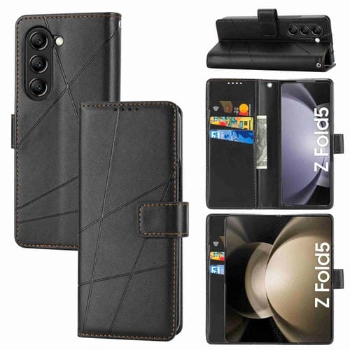 Funda para Teléfono Samsung Galaxy Z Fold5 con Línea en Relieve y Textura de Cuero Genuino (Negro)