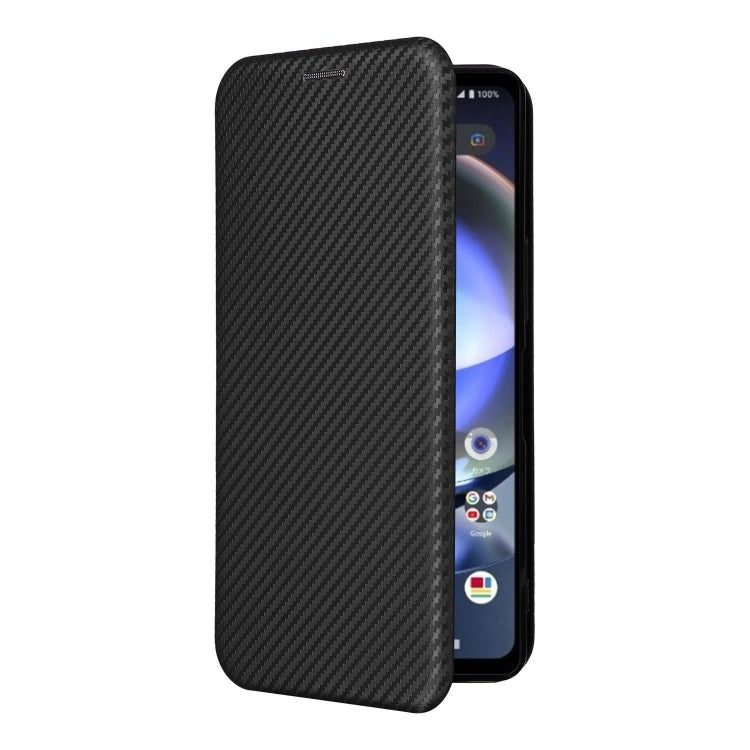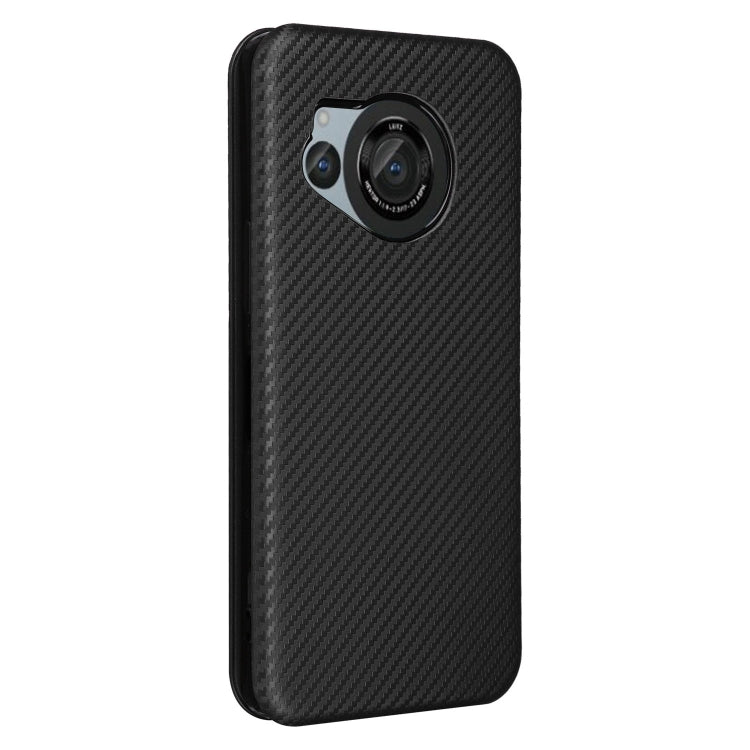 Funda de Cuero para Sharp Aquos R8 con Textura de Fibra de Carbono (Negro)