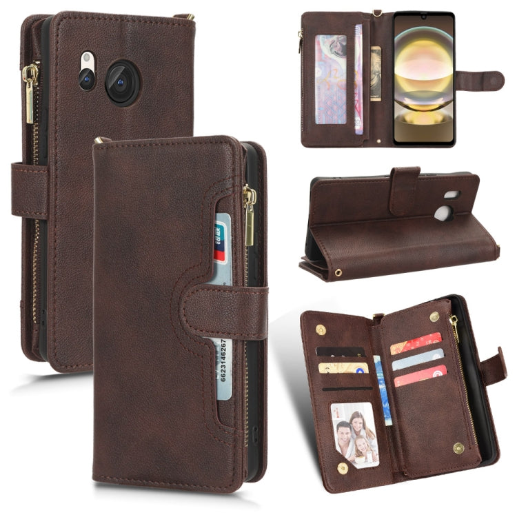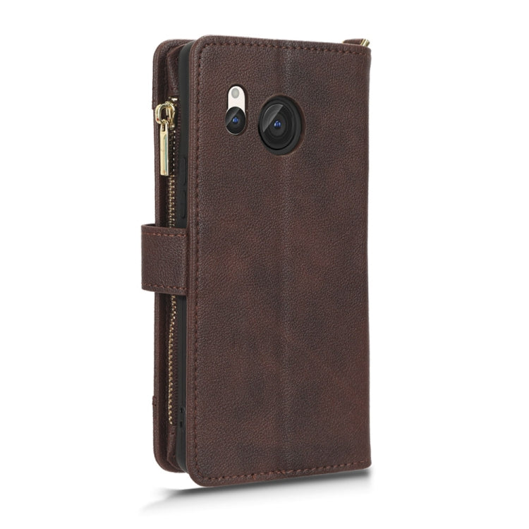 Funda de Cuero para Sharp Aquos R8 con Textura Litchi y Cremallera (Marrón)