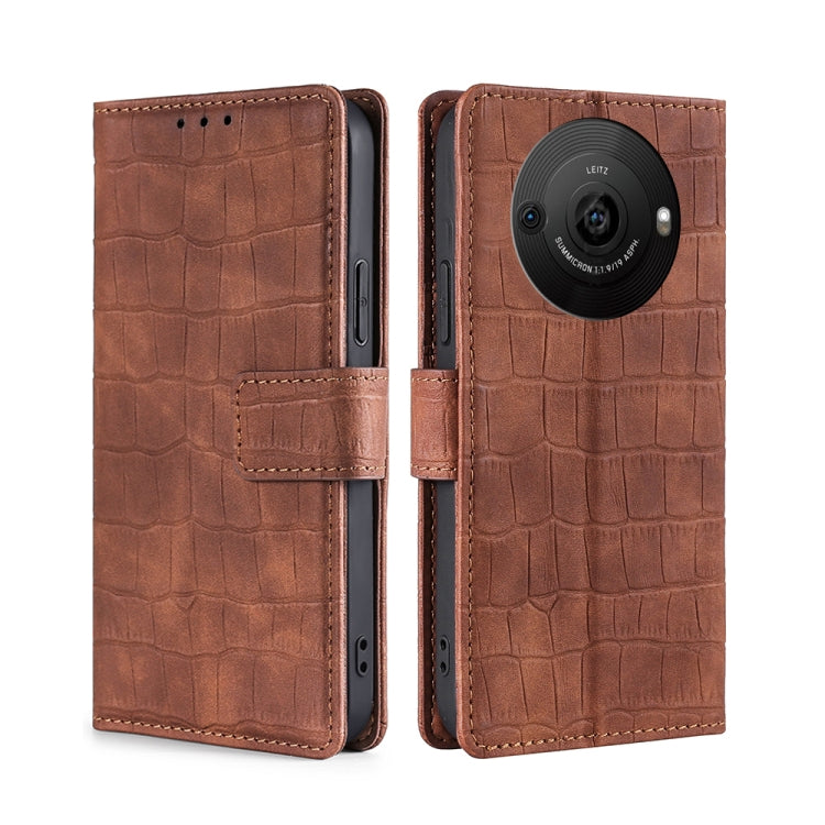 Funda de Cuero para Sharp Aquos R8 Pro Sh-51 Skin Feel Cocodrilo con Cierre Magnético (Marrón)